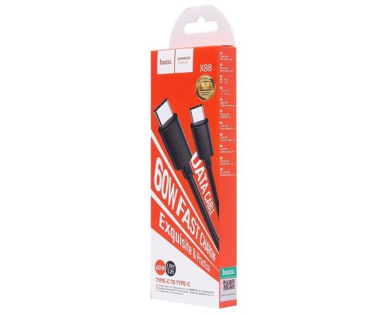Кабель Type-C - Type-C Hoco X88 60W 100см 3A (black) (215569)