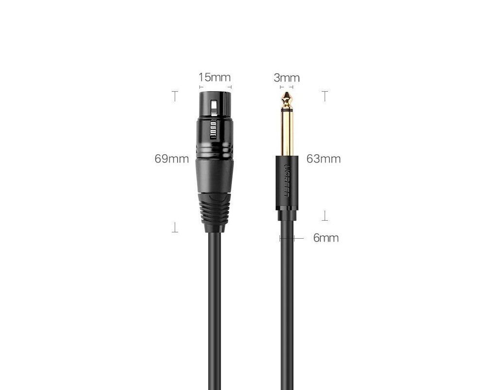 Кабель UGREEN AV131 20719 6.35 Male To XLR Female Cable 2m Black