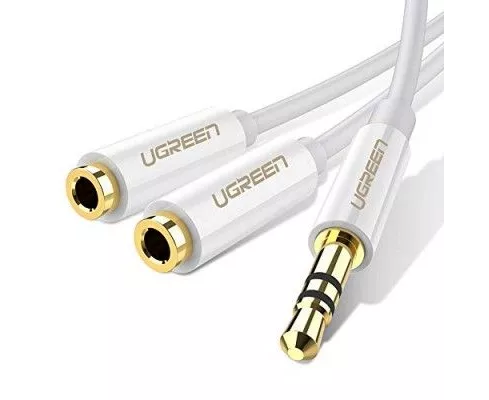 Кабель UGREEN AV134 10739 3.5mm Male to 2 Female Audio Cable 25cm white