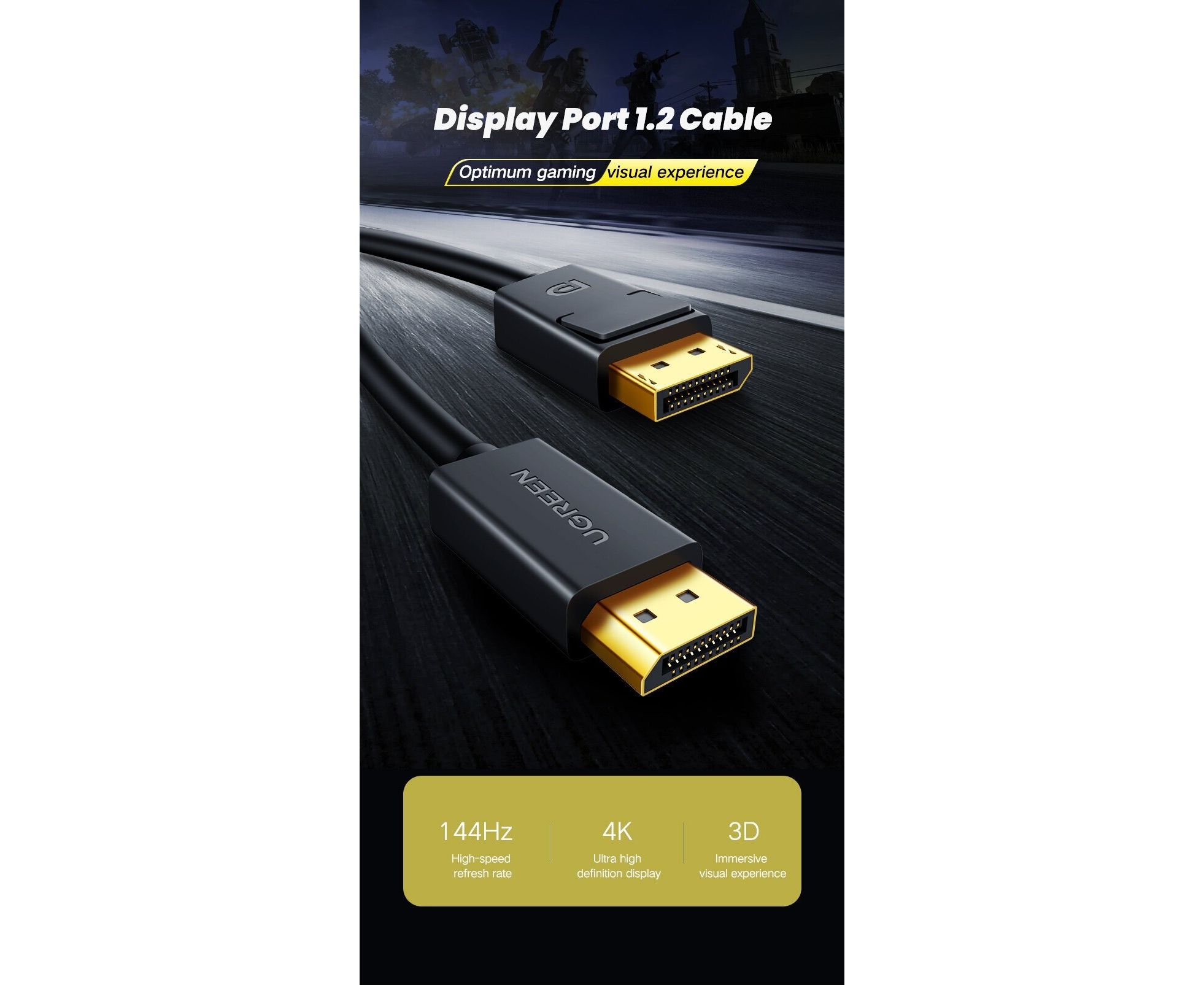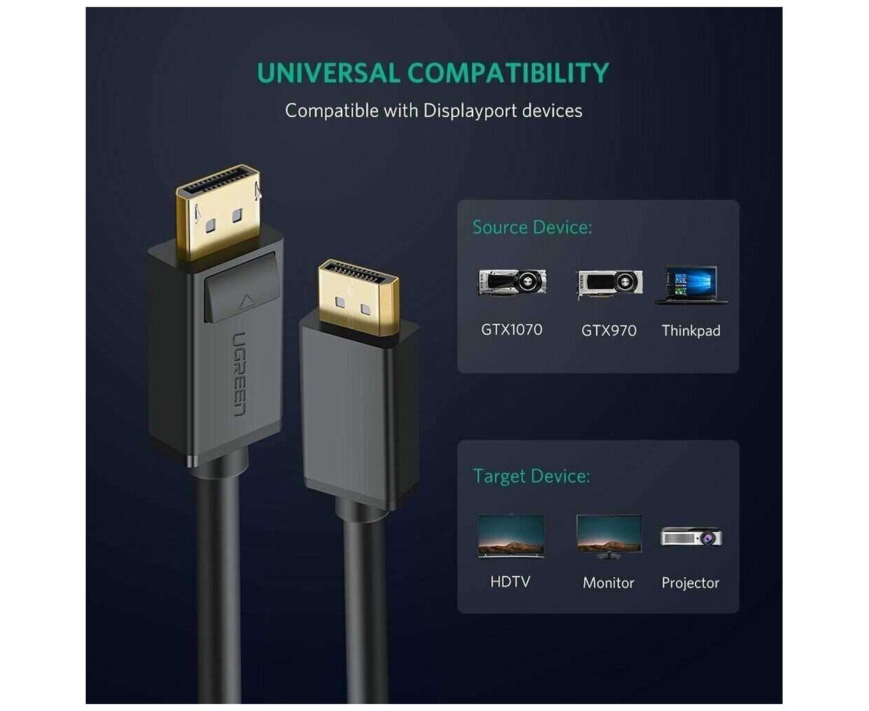 Кабель UGREEN DP102 10213 DP Male to Male Cable 5m Black