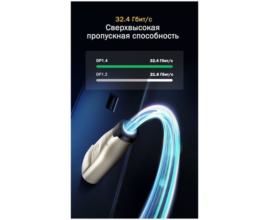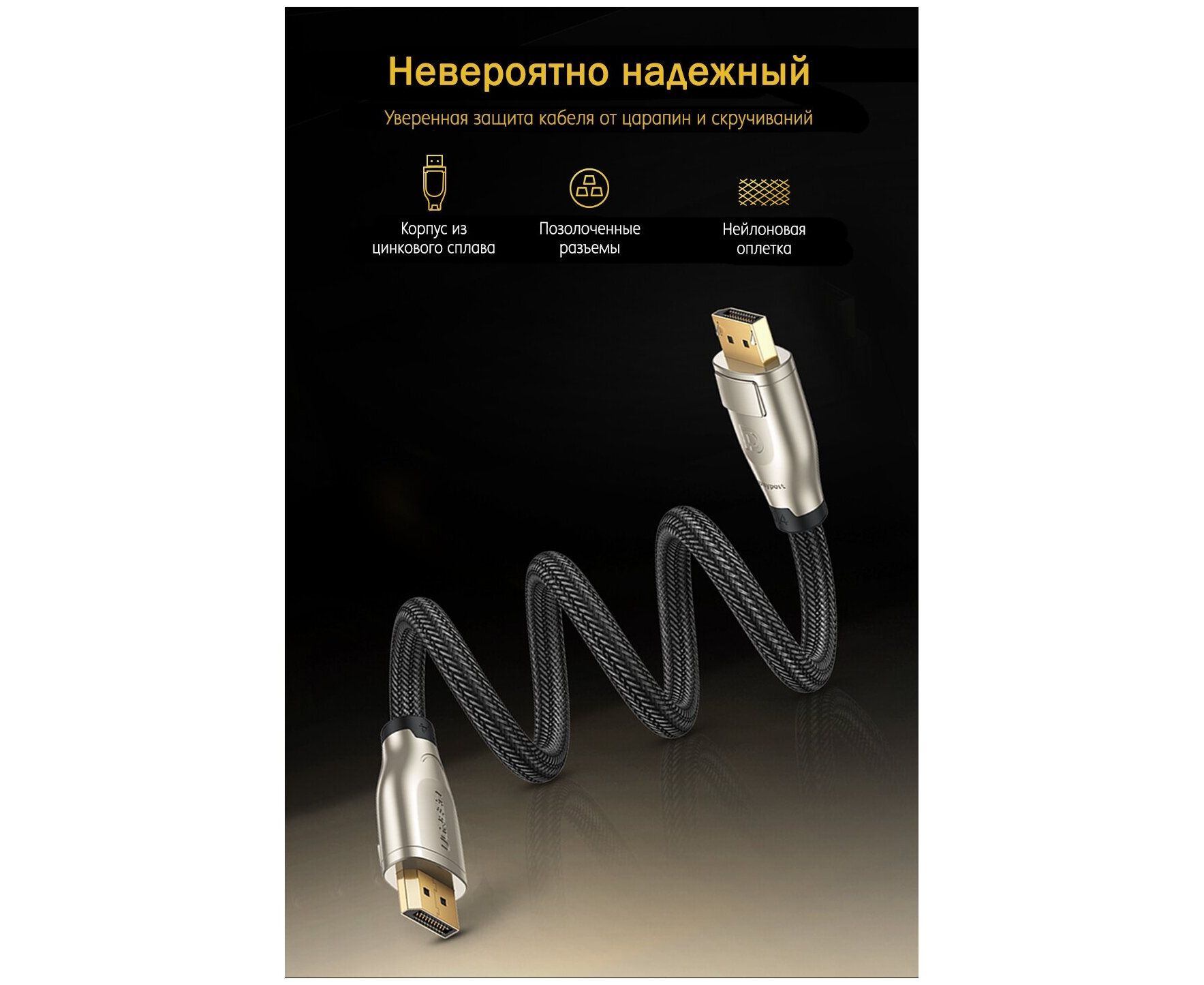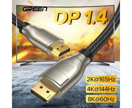 Кабель UGREEN DP112 60843 1.4 DP M/M Round Cable Zinc Alloy Shell with Braided 2m Black