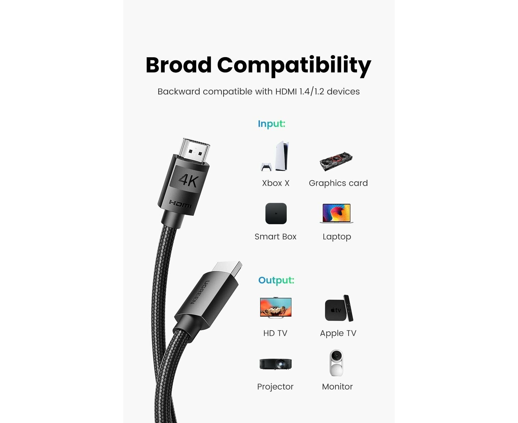 Кабель UGREEN HD119 40102 4K HDMI Cable Male to Male Braided 3m Black