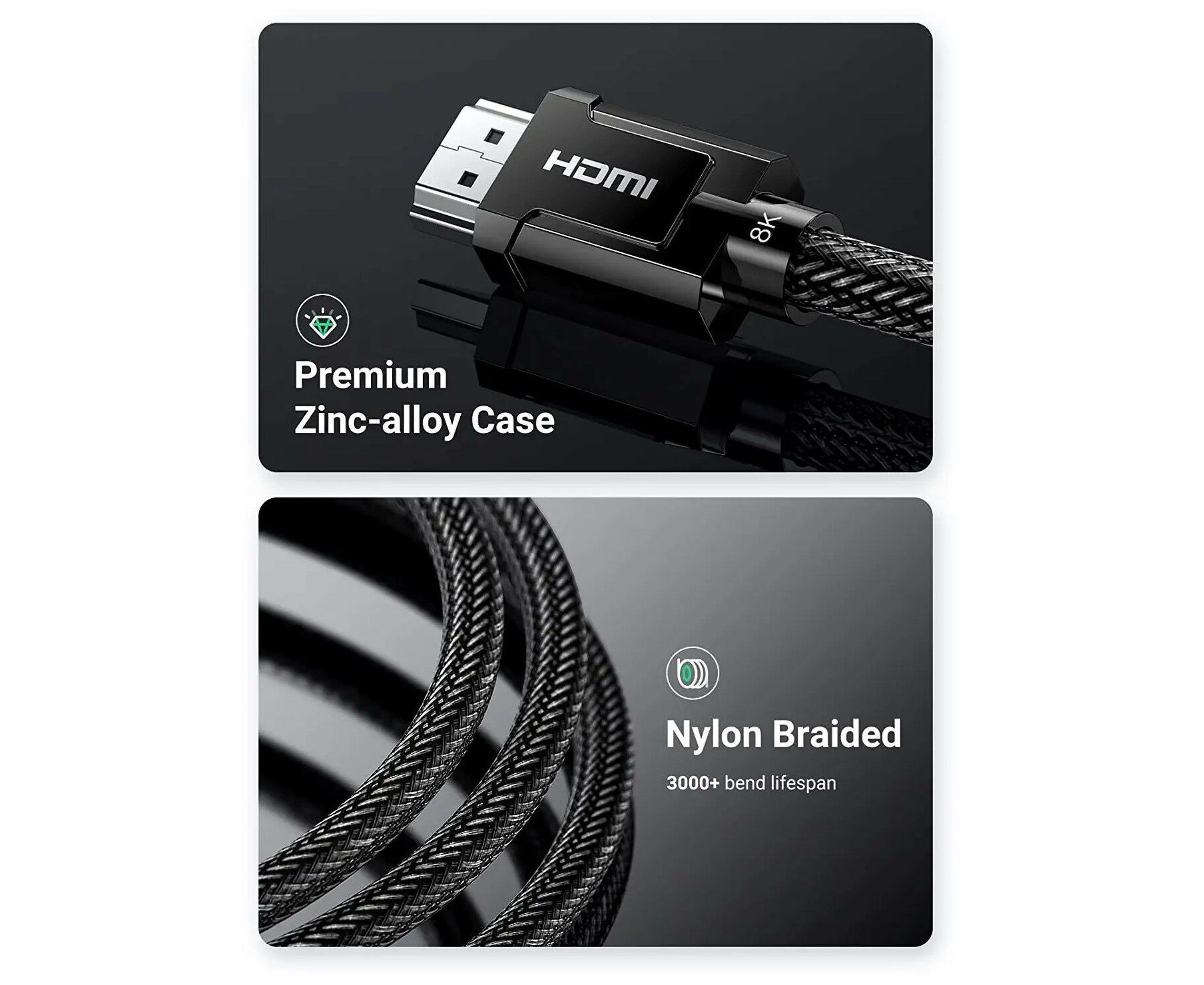 Кабель UGREEN HD135 70320 8K HDMI 2.1 Male To Male Cable 1.5m Gray