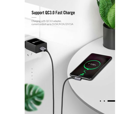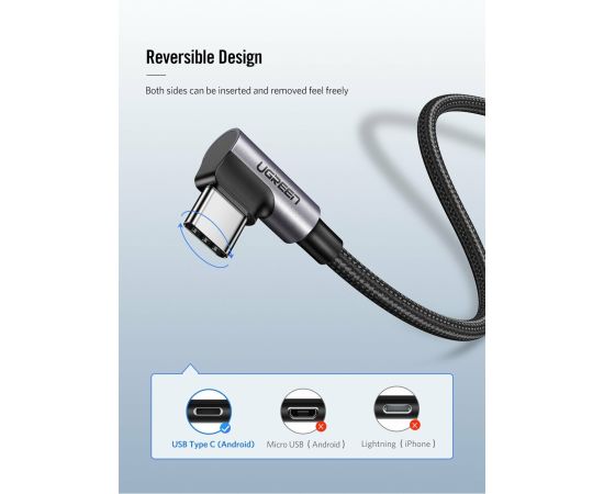 Кабель UGREEN US284 70255 Angled USB-C Male To USB2.0 A Male 3A Data Cable 90°Angle 3m Black