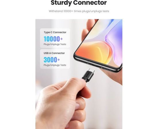 Кабель UGREEN US287 60118 USB-A 2.0 to USB-C Cable Nickel Plating 2m Black