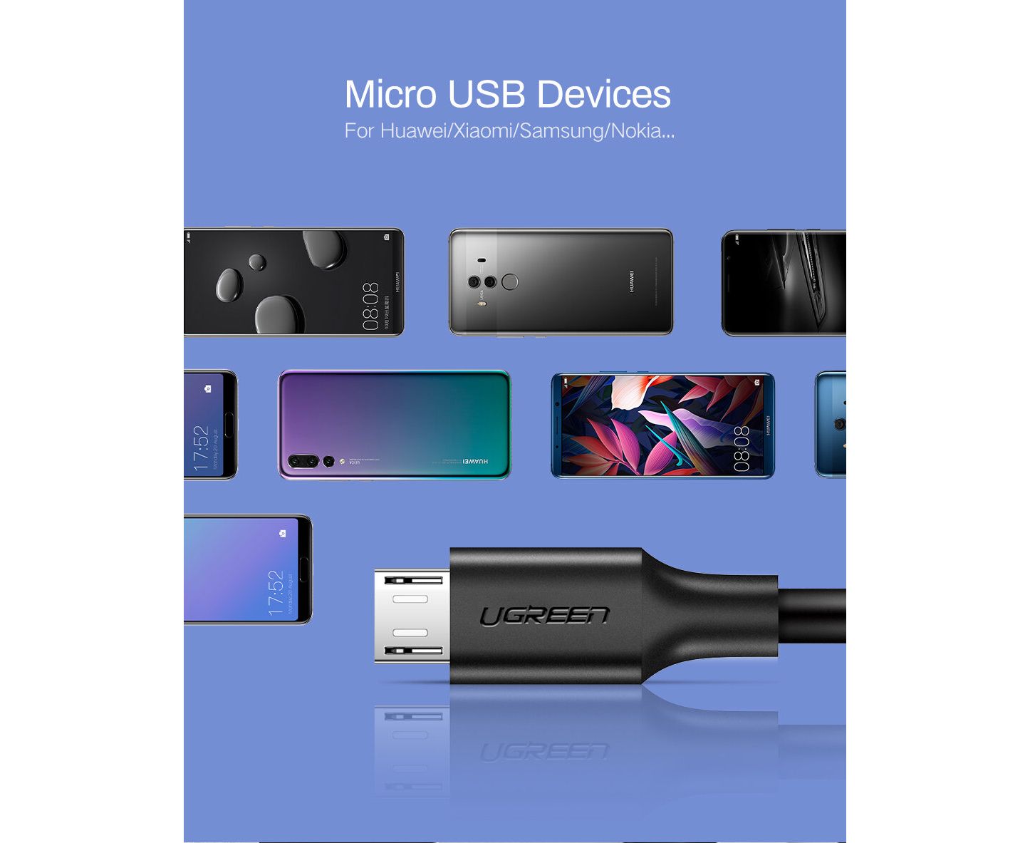 Кабель UGREEN US289 60135 USB 2.0 A to Micro USB Cable Nickel Plating 0.5m Black