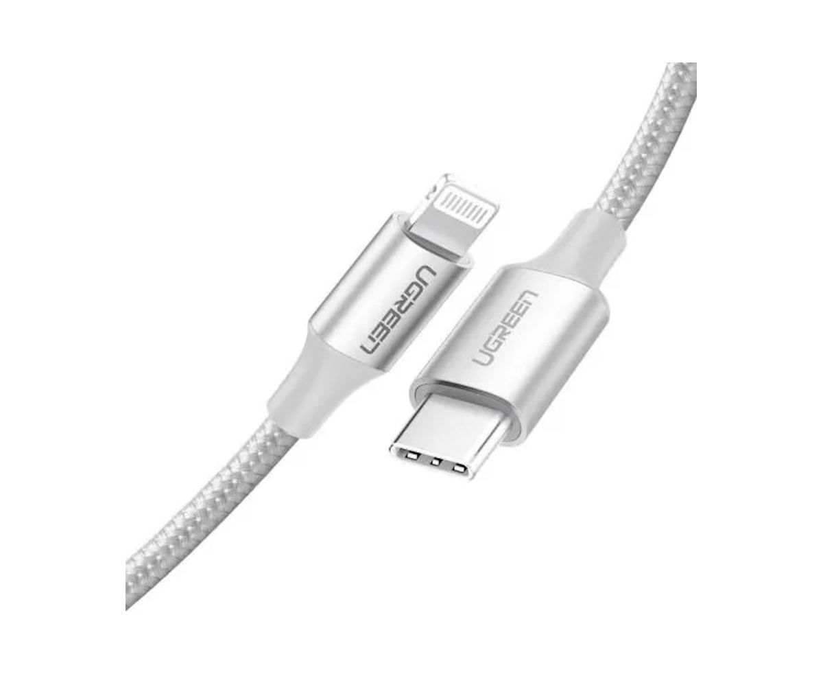 Кабель UGREEN US304 70523 USB-C to Lightning M/M Cable Aluminum Shell Braided 1m Silver