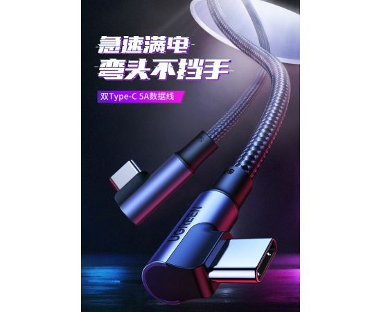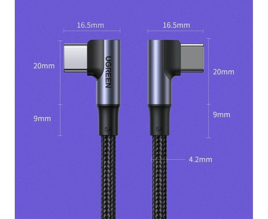 Кабель UGREEN US335 70696 Angled USB-C M/M Cable Aluminium Shell with Braided 1m Black