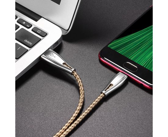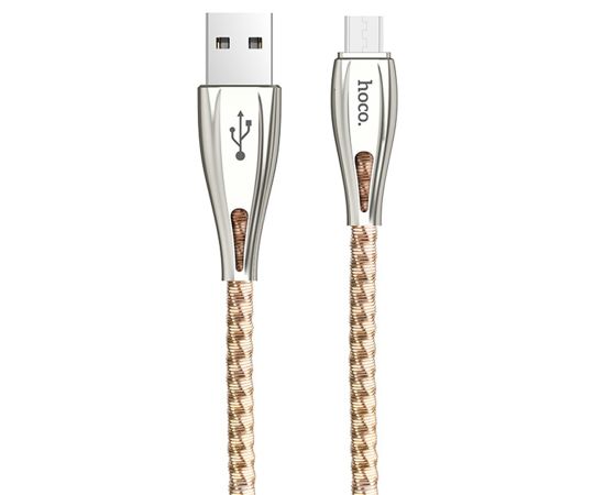 Кабель USB HOCO U56 Metal armor USB - MicroUSB, 2.4А, 1.2 м, золотой