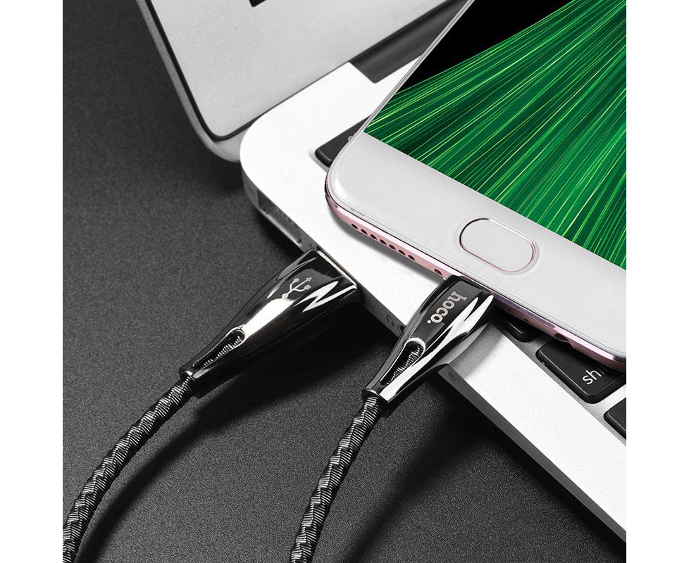 U56 Metal armor кабель для зарядки и передачи данных USB на Micro-USB длина 1.2м ток 2.4А цинковый сплав и оплетка из нержавеющей стали
