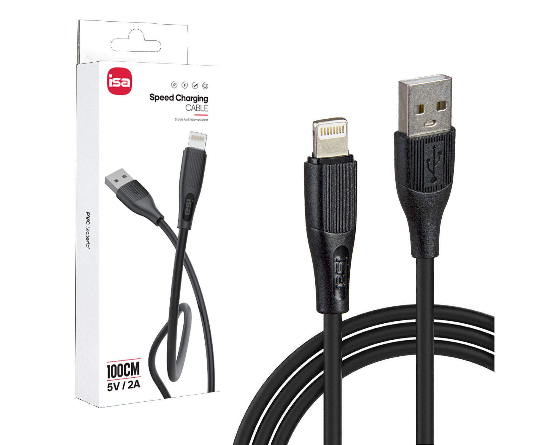 Кабель USB - Lightning ISA X-6, 2A 1m в нейлоновой оплетке (Black)