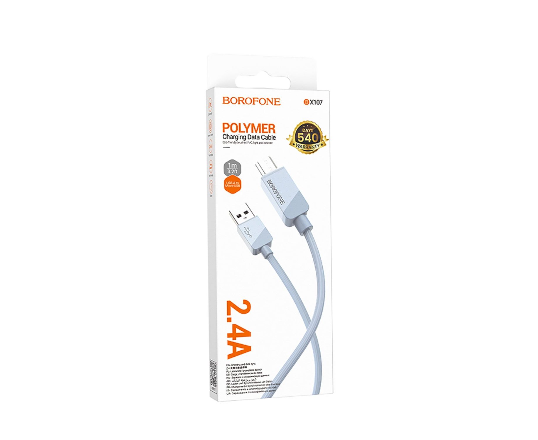 Кабель USB - micro USB Borofone BX107 12W 100см 2,4A (blue) (234646)