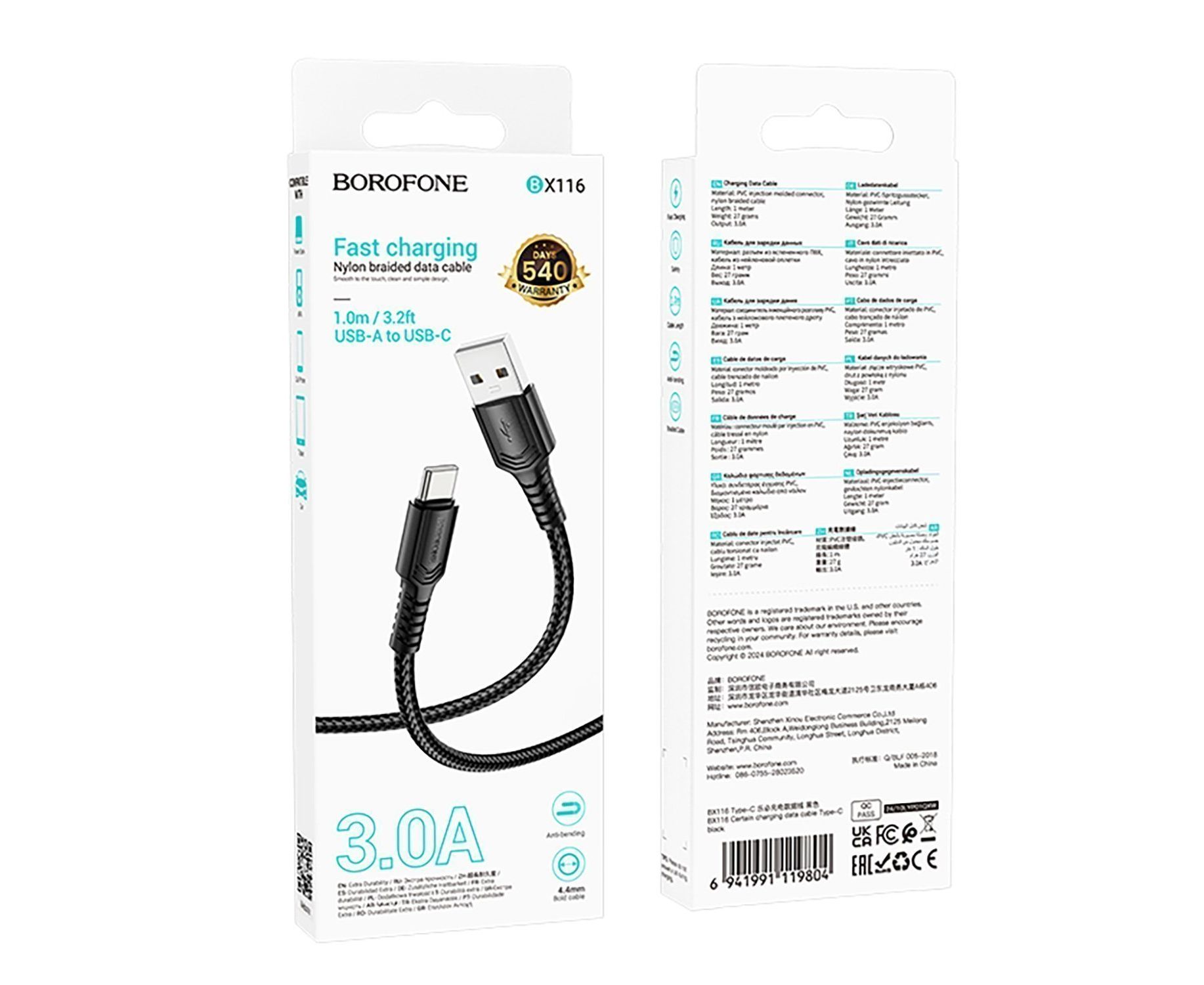 Кабель USB - Type-C Borofone BX116 Certain 18W 100см 3A (black) (240333)