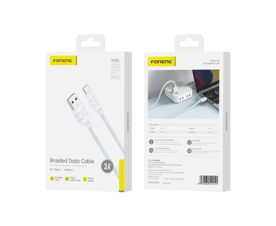Кабель USB - Type-C Foneng XS02 Braided Cable 1.2M, 3A, тканевая оплетка (White)