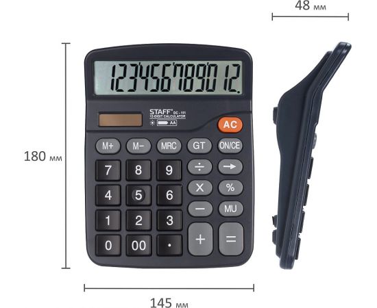 Простой в использовании и точный в расчётах настольный калькулятор STAFF PLUS STF-111 выполняет все необходимые вычисления на работе и дома. Кнопки нажимаются легко и приятно, эргономичный наклон корпуса позволяет работать с максимальным комфортом.