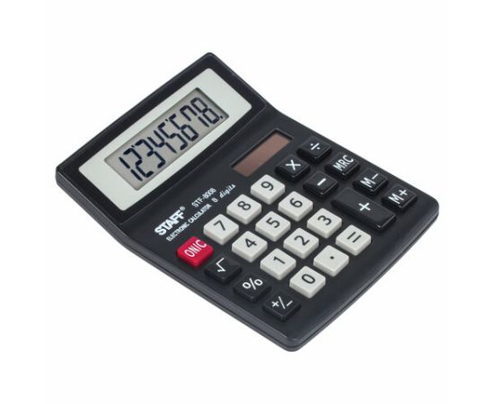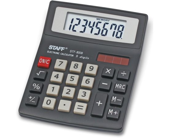Настольный калькулятор STAFF STF-8008 выполняет все необходимые вычисления и не занимает много места на рабочем столе. Яркий дисплей и эргономичный наклон корпуса позволяют работать с максимальным комфортом, несмотря на компактный размер.