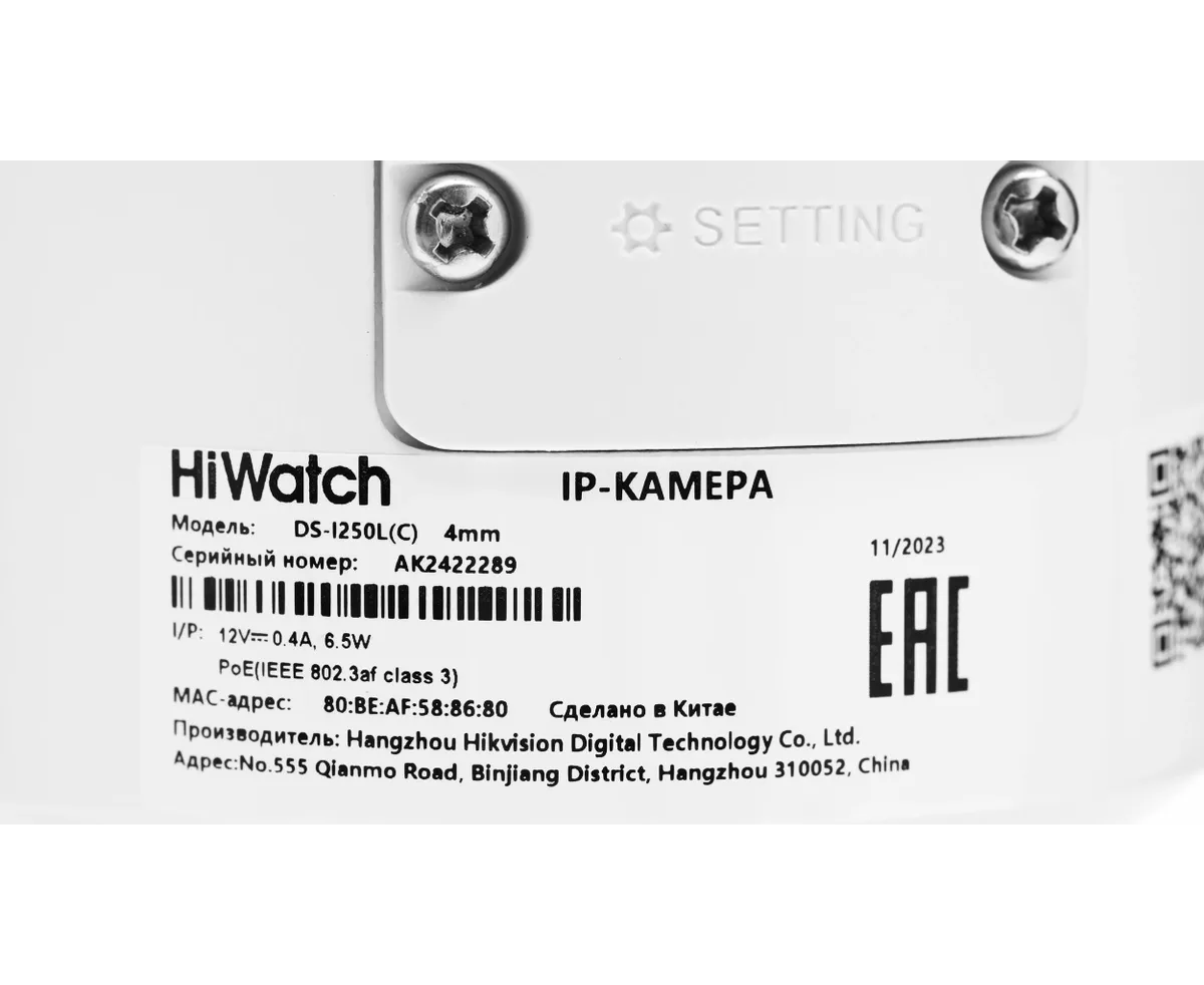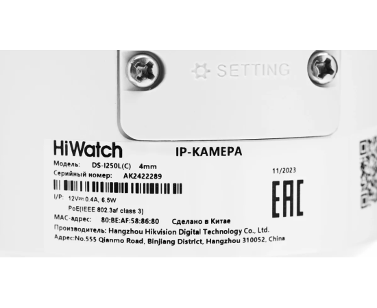 Камера видеонаблюдения IP HiWatch DS-I250L(C) (4 mm) 4-4мм цв. корп. белый