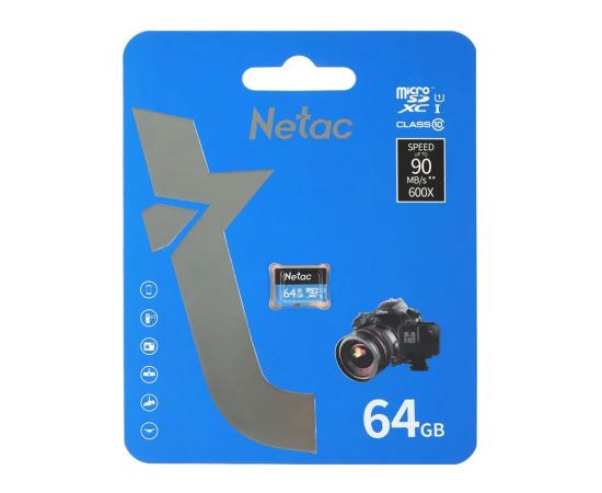 Карта флэш-памяти MicroSD 64 Гб Netac P500 Standard UHS-I (90 Mb/s) без адаптера (Class 10)4(222573)