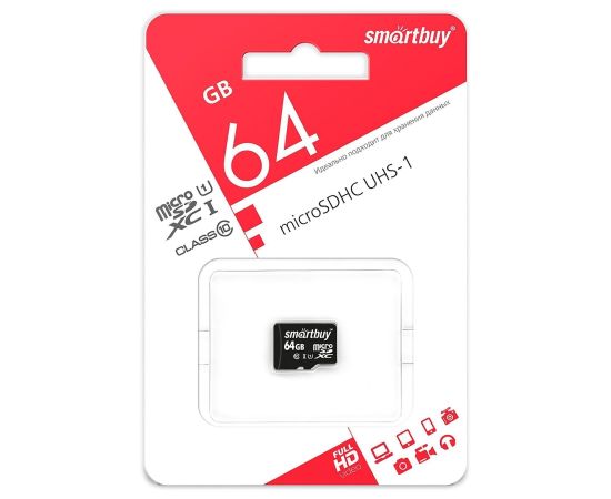 Карта флэш-памяти MicroSD 64 Гб Smart Buy без SD адаптера (class 10)