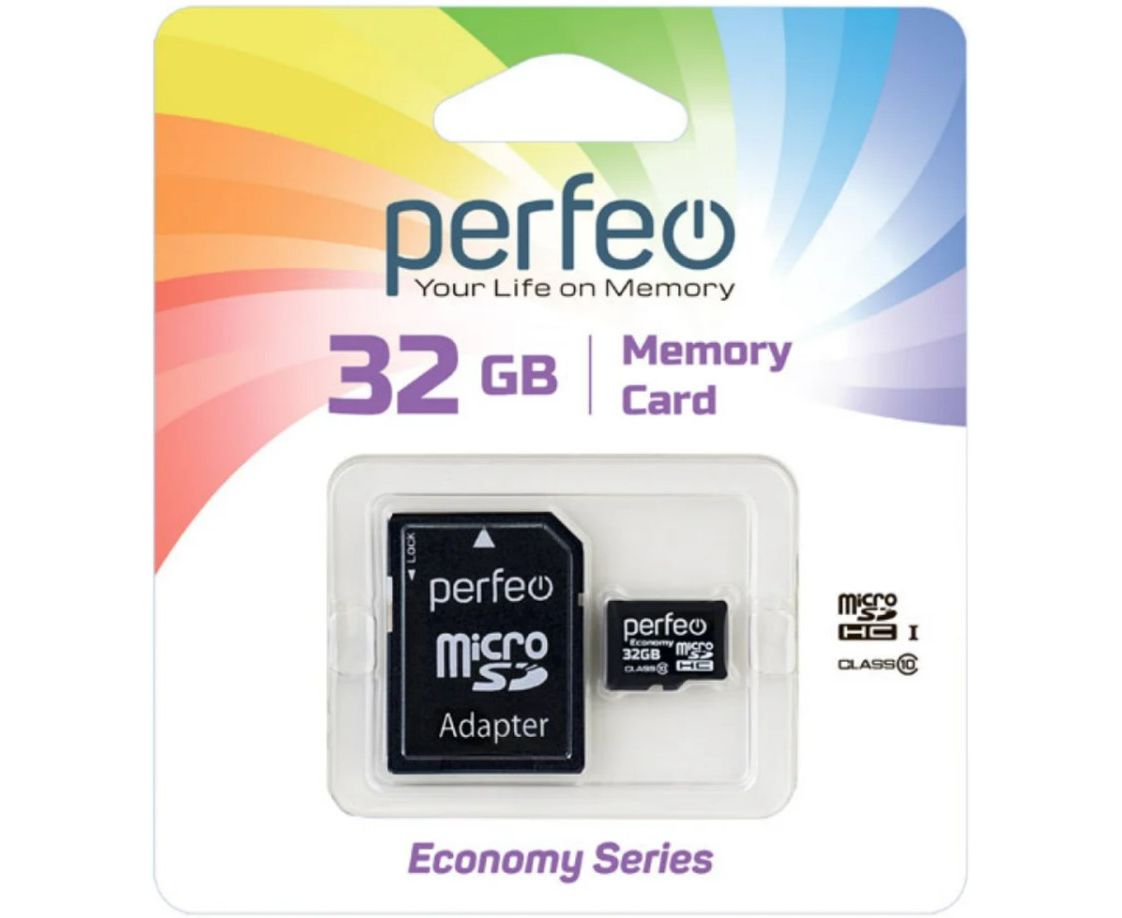 Карта памяти Perfeo microSD 32GB High-Capacity (Class 10) (серия экономи), (Арт. PF32GMCSH10AES)