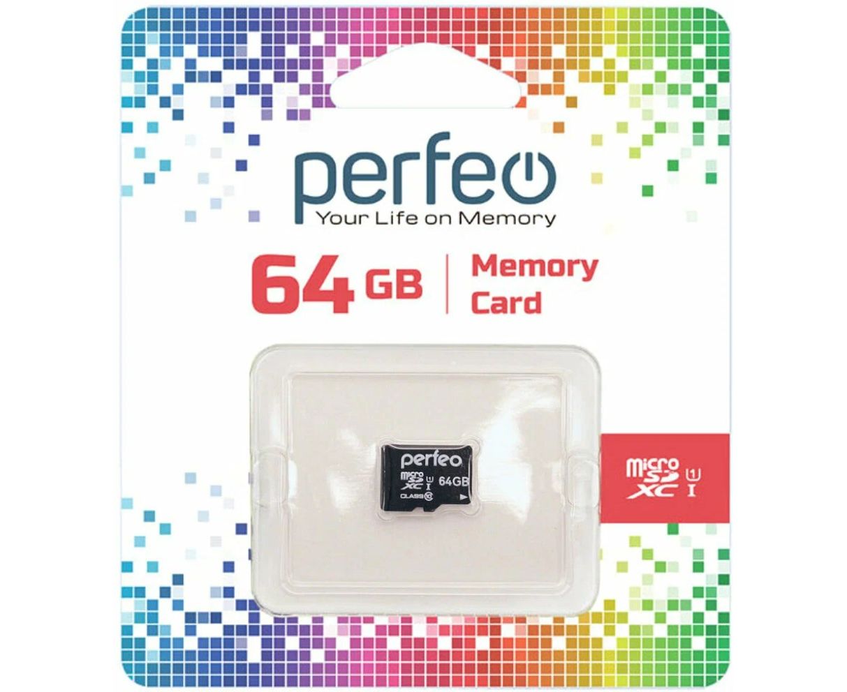 Карта памяти Perfeo microSDXC 64GB High-Capacity (Class 10) UHS-1 без адаптера