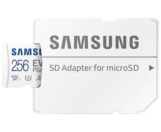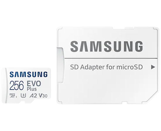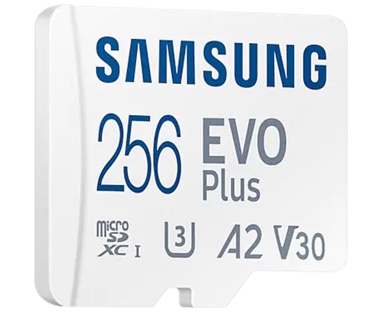 Карта памяти Samsung Evo Plus Class 10 (MB-ME256KA/AM), microSDXC 256GB A2, V30, UHS-I (U3), W 90 МБ/с, R 130 МБ/с, адаптер на SD