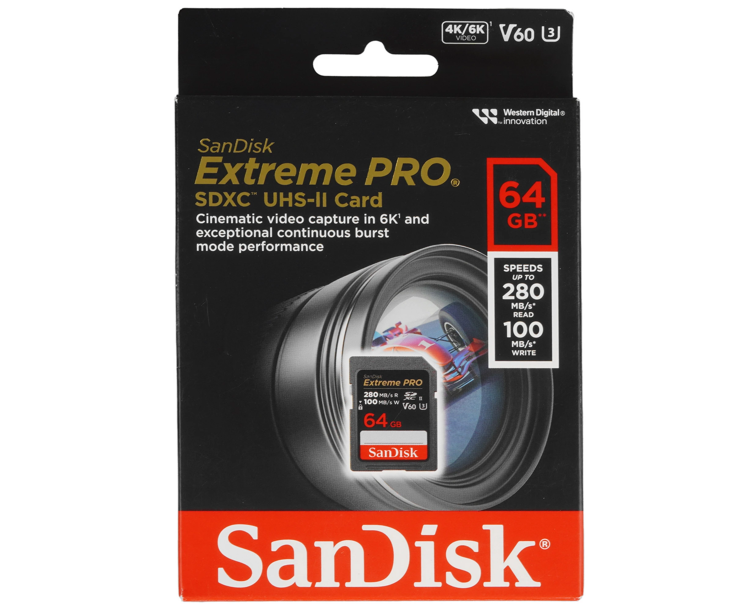 Карта памяти SanDisk Extreme Pro SDSDXEP-064G-GN4IN, 64GB V60 UHS-II SD Card черно-красный