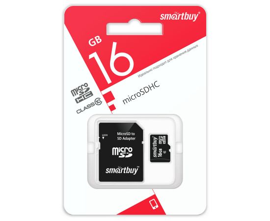 Карта памяти Smartbuy (SB16GBSDCL10-01) 16GB microSDHC Class 10 (SD адаптер)
