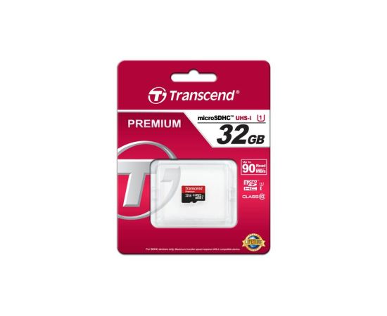 Карта памяти microSDHC Transcend Premium, 32 Гб, UHS-I Class 10 U1, чтение: до 90Мб/с, без адаптера
