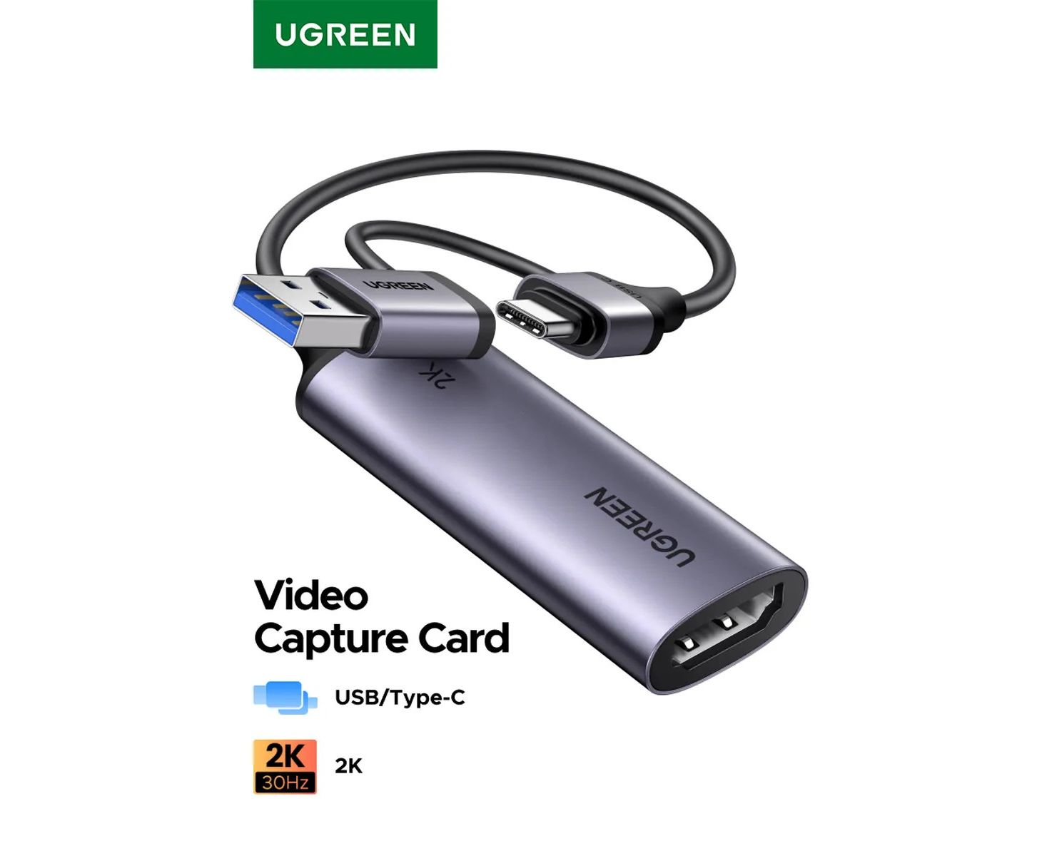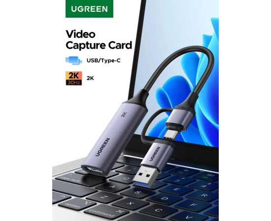 Карта видеозахвата UGREEN CM629 (15389) HD HDMI USB-C/USB-A 4K 30Hz Video Capture Card серый космос