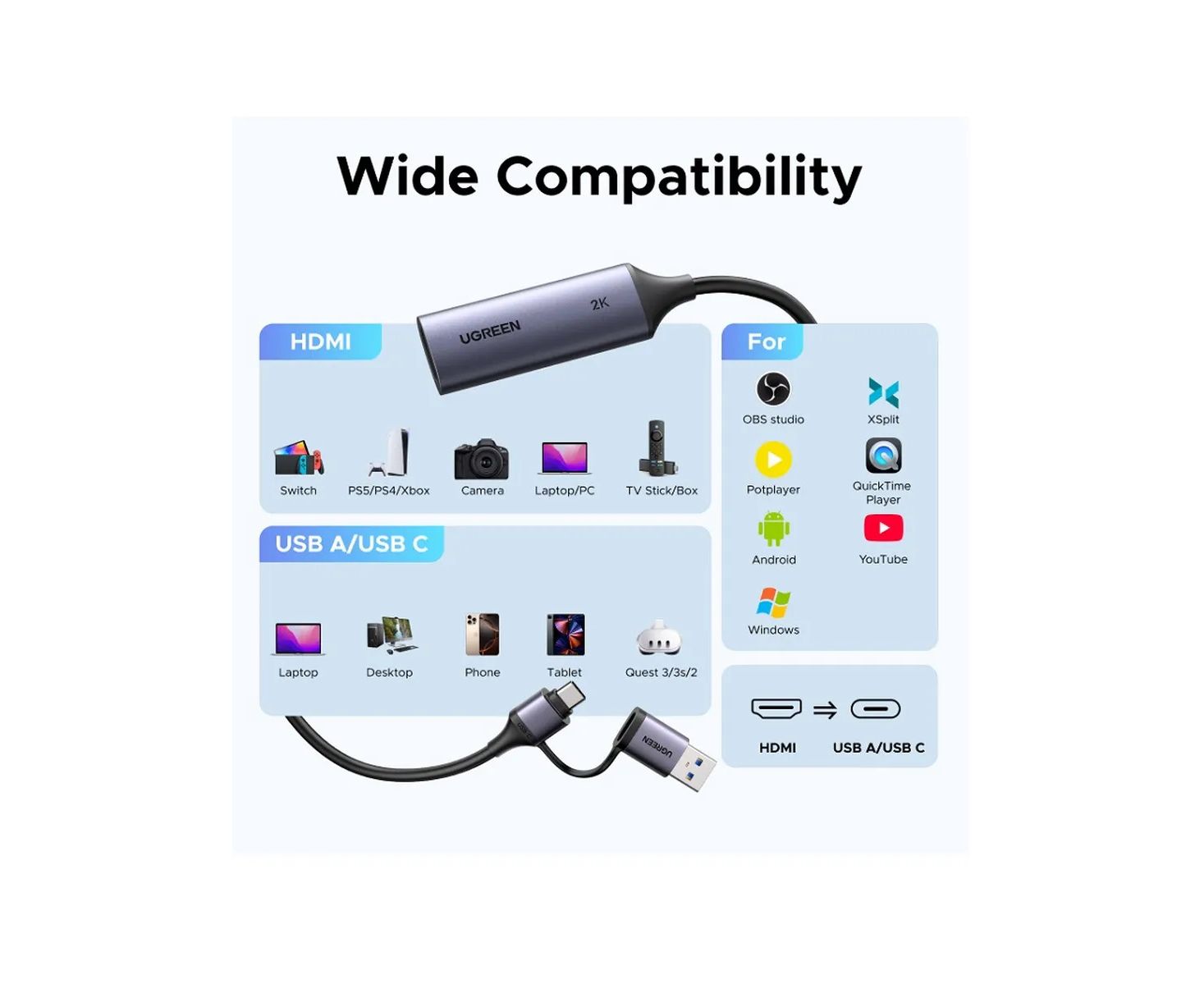 Совместимое ПО: OBS Studio/XSplit/Potplayer/QuickTime Player