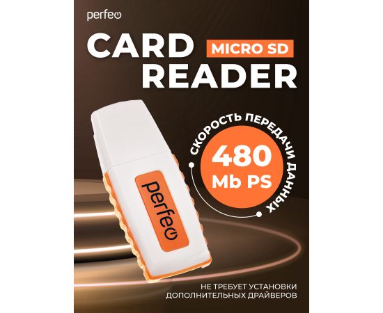 Картридер Perfeo Micro SD, (PF-VI-R006 Orange) Оранжевый, (Арт. PF_E1461)