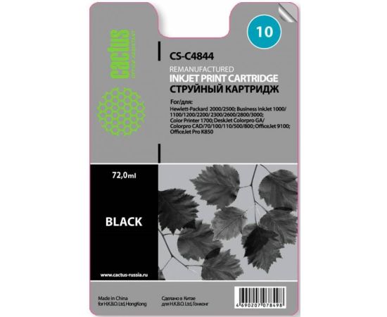 Картридж Cactus C4844 струйный черный для №10 HP 2000/2500/1000/1100/1200 (72ml)
