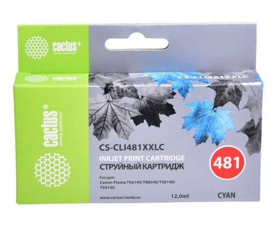 Картридж Cactus (CS-CLI481XXLC) голубой струйный (12мл) для Canon Pixma TR7540/TR8540/TS6140/TS8140
