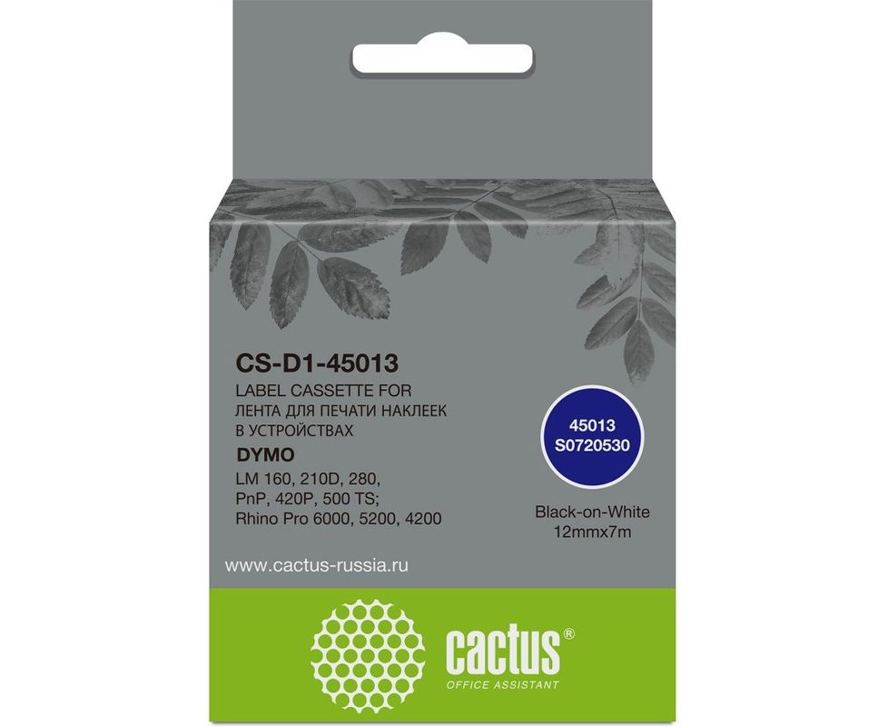 Картридж ленточный Cactus CS-D1-45013 45013 для Dymo LM 160/210D/280/PnP/420P/500 TS; Rhino Pro 6000/5200/4200