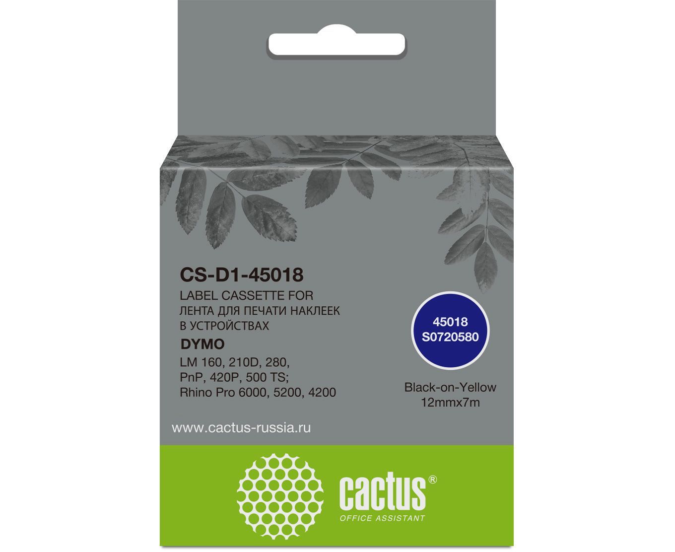 Картридж ленточный Cactus CS-D1-45018 45018 для Dymo LM 160/210D/280/PnP/420P/500 TS; Rhino Pro 6000/5200/4200