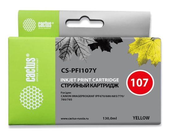 Картридж перезаправляемый струйный Cactus CS-R-PFI107Y-Chip желтый 260мл для Canon imageProGraf iPF670/680/685/770/780/785 с чипом
