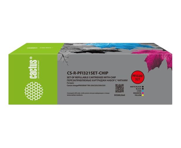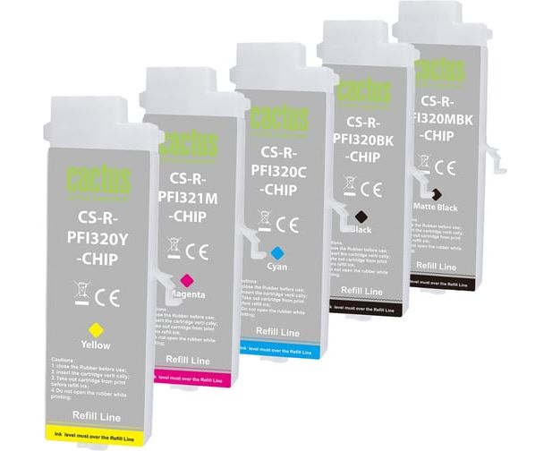 Картридж перезаправляемый струйный Cactus CS-R-PFI321SET-Chip набор 5шт.упак. для Canon imageProGraf TM-250/255/350/355 с чипом