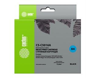 Картридж струйный Cactus CS-C5016A №84 черный 72мл для HP DJ 10PS/20PS/30GP/50PS/90/120/130DE
