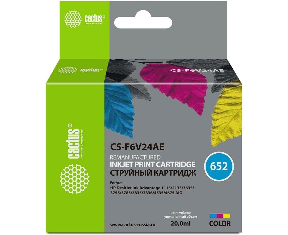 Картридж струйный Cactus CS-F6V24AE 652 многоцветный 300стр 200мл для HP DeskJet Ink Advantage 1115/2135/3635