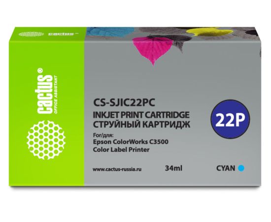 Картридж струйный Cactus CS-SJIC22PC голубой (34мл) для Epson ColorWorks C3500