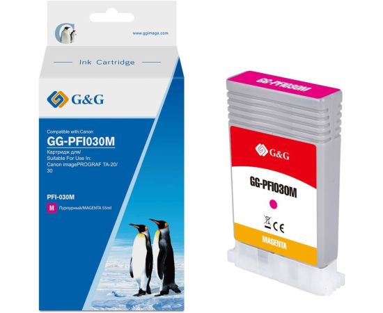 Картридж струйный G&G GG-PFI030M PFI-030M пурпурный 55мл для Canon imagePrograf TA-20/30