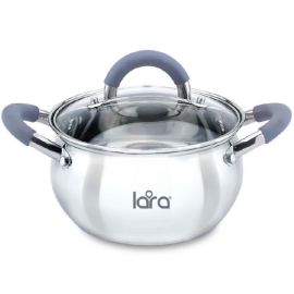 Кастрюля LARA LR02-483 (нерж) серия BELL 22x12,5см, 4,7л, капс. инд дно, силик. ручка...
