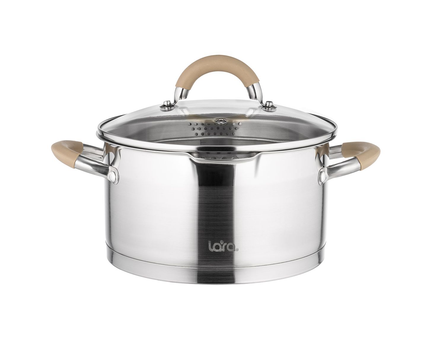 Кастрюля LARA LR02-340 (нерж) серия <Берлин> 1,7л 16х9см капс.дно, шкала, силик.накл, крыш.-дуршлаг