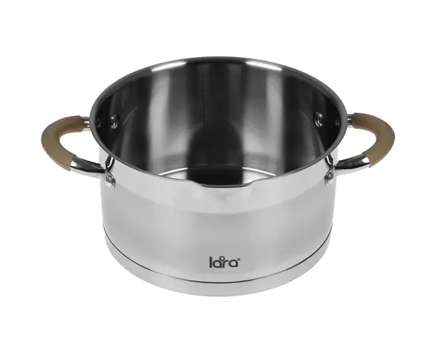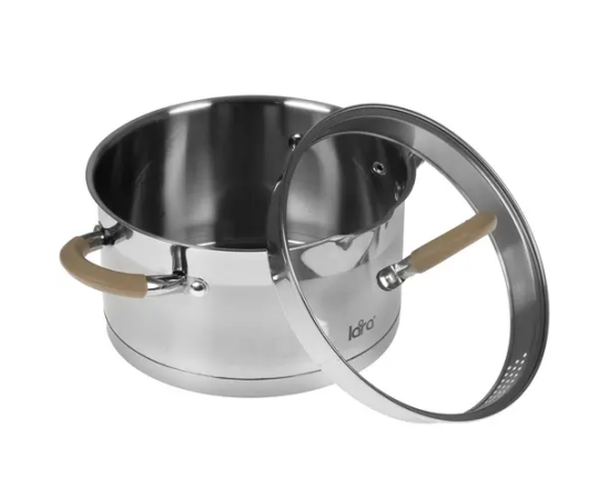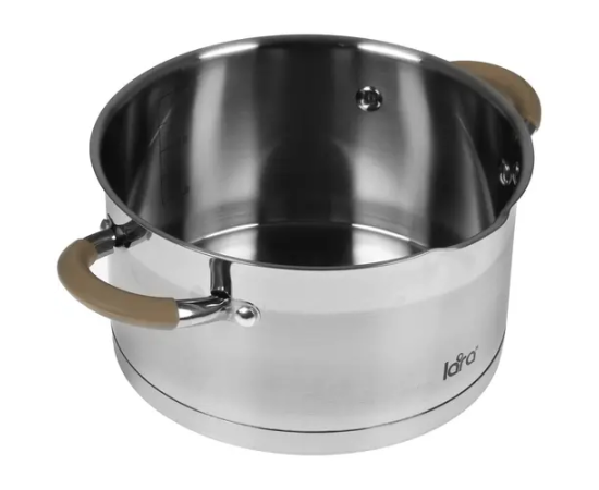 Кастрюля LARA LR02-342 (нерж) серия <Берлин> 3,1л 20x11см капс.дно, шкала, силик.накл, крыш.-дуршлаг