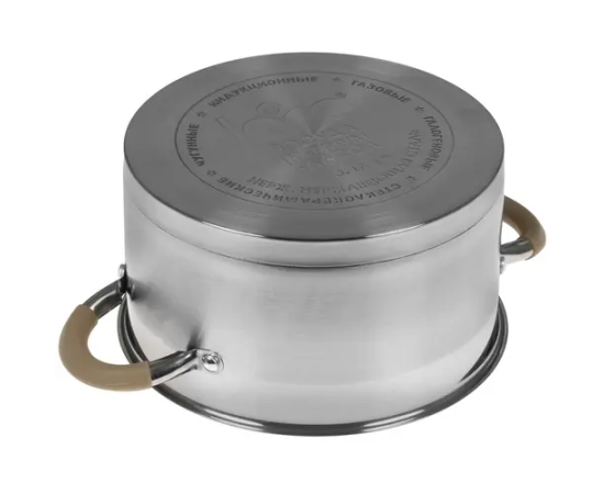 Кастрюля на 3.1 литра имеет естественную серебристую расцветку с бежевыми элементами. Посуда из нержавеющей стали дополнена комбинированной полировкой поверхности и капсулированным индукционным дном. Кастрюля поставляется с плотной крышкой из термостойкого стекла, дополненной ненагревающейся округлой ручкой.
