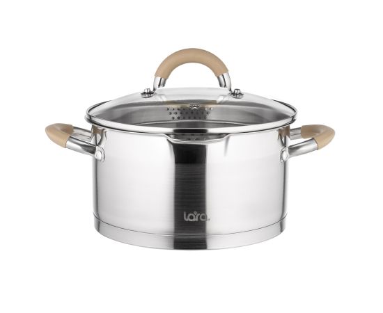 Кастрюля LARA LR02-344 (нерж) серия <Берлин> 5,7л 24x13см капс.дно, шкала, силик.накл, крыш.-дуршлаг