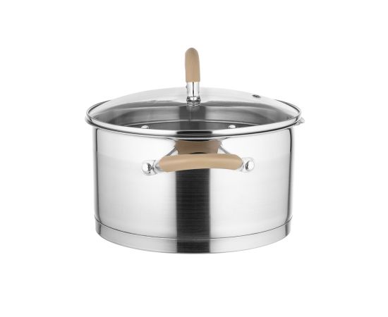 В качестве материала для серии «Берлин» были подобраны высококачественная нержавеющая сталь AISI201, термостойкое стекло и ненагревающийся силикон бежевого цвета, который используется в отделке ручек.