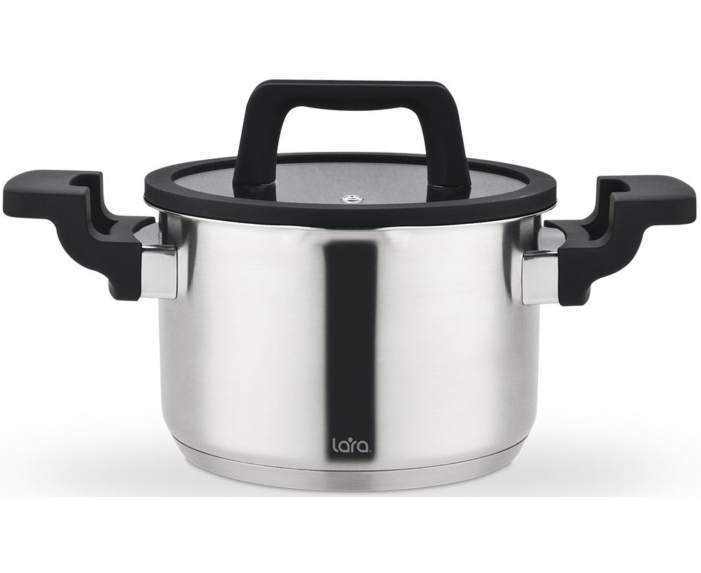 Кастрюля LARA LR02-292 нерж Премиум 20x12,5см 3.9л, индукционное дно, все типы плит, Soft-touch