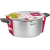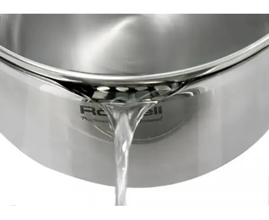 Нерж. сталь 18/10. Тройное дно без воздушных полостей. Оригинальный дизайн крышки для удобного слива жидкости без дуршлага. Ручки из бакелита с покрытием Soft Touch. Внутренние отметки литража. Для всех видов плит, включая индукционные. Гарантия на сталь – 25 лет